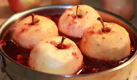 Если вам хватит выдержки и терпения, оставьте яблоки часов на 12 в соусе, убрав их на нижнюю полку холодильника. А если нет, подавайте теплыми, полив соусом и украсив листиками мяты. Приятного аппетита!