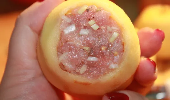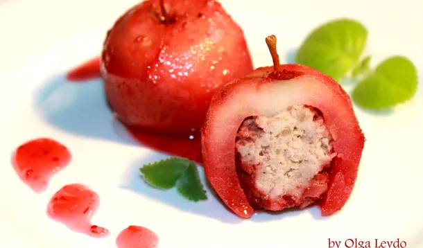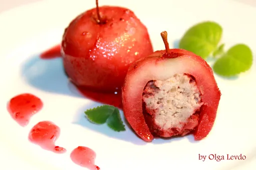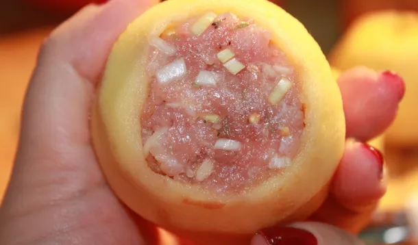 Постараться как можно плотнее заполнить яблоки фаршем.