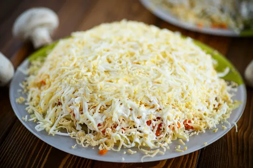 Предлагаем вашему вниманию слоеный салат «Сказка», который назван так благодаря ингредиентам, входящих в его состав. Только представьте, сочетание шампиньонов и курицы дополняется необыкновенно сочным и неожиданным секретным ингредиентом – ананасом. Не салат, а сказка!