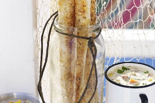 3.Смажьте тесто взбитым яйцом. Посыпьте оставшимся сыром, паприкой и маком. Нарежьте на полоски длиной 12,5 см и шириной 2 см.