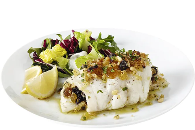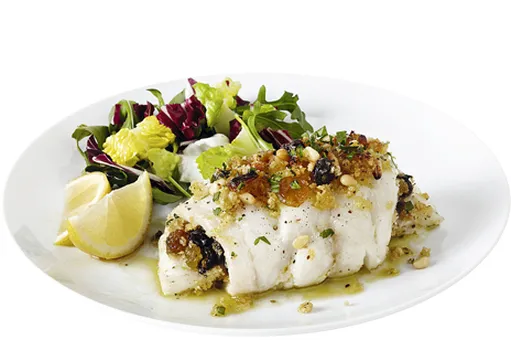 5.Перед подачей посыпьте рыбу оставшейся петрушкой. Подавайте с дольками лимона и зеленым салатом.