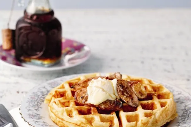 5.Включите электрическую вафельницу, смажьте маслом и заполните тестом. Готовьте вафли по инструкции вашей вафельницы до румяного цвета. Выложите вафли на блюдо, накройте фольгой, чтобы не остыли.