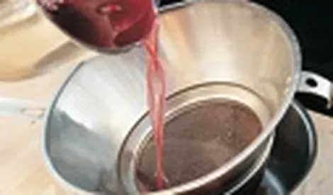 Доведите клюквенный сироп до кипения, снимите с огня. Процедите в отдельную емкость, ягоды протрите через сито.