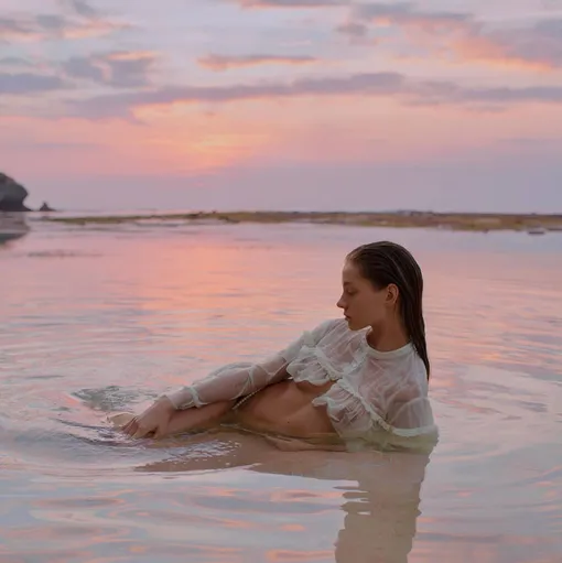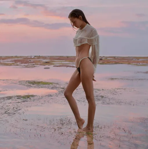 26-летняя модель Алеся Кафельникова взорвала соцсети, опубликовав откровенные кадры с новой фотосессии, снятой на пляже Бали. На снимках дочь легендарного теннисиста предстала в мокрой белой блузке, сквозь которую чётко просвечивает её обнажённая грудь, а также в черных трусах с жемчужными лямками. Образ дополнили распущенные волосы, крупные золотые серьги и нюдовый макияж.