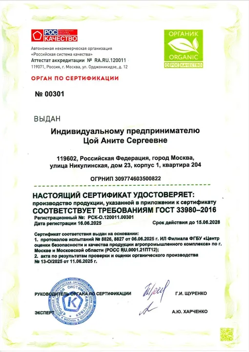 Теперь у Аниты есть даже свои поля, где выращивают экологически чистые овощи, а также мини-цех, где закупоривают соленья — помидоры, перец, огурчики и так далее. Продукция звезды выпускается под маркой «Цойкины рецепты». Артистка прежде всего уделяет внимание качеству своего товара и не так давно подтвердила его, получив сертификат, удостоверяющий, что все соленья сделаны из органических продуктов.