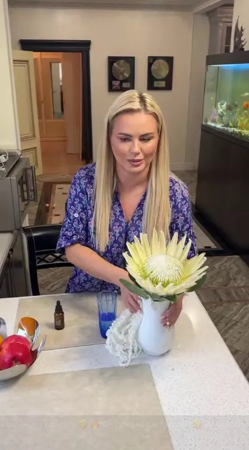 «Ну что, вот мой букет невесты радует меня с утра вместе с похмельем лёгеньким, хотя я вчера очень держалась» ,— рассказала она, делая себе антипохмельное зелье, которое должно придать ей заряд бодрости на целый день. — «Потому что сегодня и пресс-конференция в ИТАР Тасс, потом съемка... В общем, вот уже накрашена, с букетом. Невеста, практически невеста!» — пошутила она.