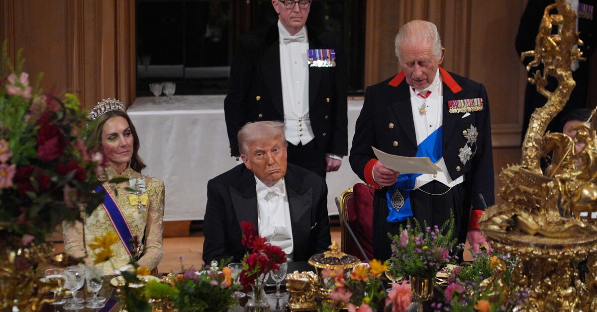 Вчерашний государственный банкет в честь визита президента США Дональда Трампа в Великобританию по-прежнему остаётся предметом пристального внимания. После того, как пресса под микроскопом рассмотрела наряды Кейт Миддлтон и Мелании Трамп, дело дошло непосредственно до блюд и напитков.