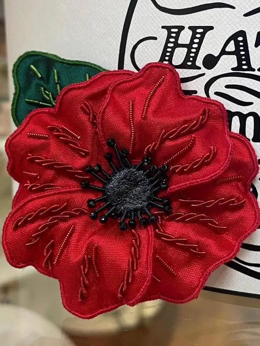 На сайте Lock & Co. уточняется, что Изабель, прошедшая обучение в Королевской школе рукоделия во дворце Хэмптон-Корт в Лондоне, владеет традиционными техниками золотой и объёмной вышивки, применяемыми при изготовлении военной униформы и парадных костюмов для представителей британской монархии. Бренд уточнил, что на создание одной такой броши в виде мака у мастерицы ушло примерно двенадцать часов ручного труда.