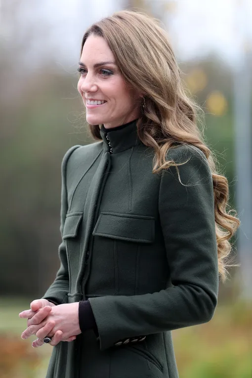 Во вторник, 14 октября, принц и принцесса Уэльская прибыли в Северную Ирландию. Для появления на публике Кейт надела тот же наряд, в котором была на рождественской службе в Сандрингеме в 2022 году. Речь идёт об оливково-зелёном платье-пальто от Alexander McQueen с объемными плечами, облегающим лифом и расклешенным подолом длиной до голени.