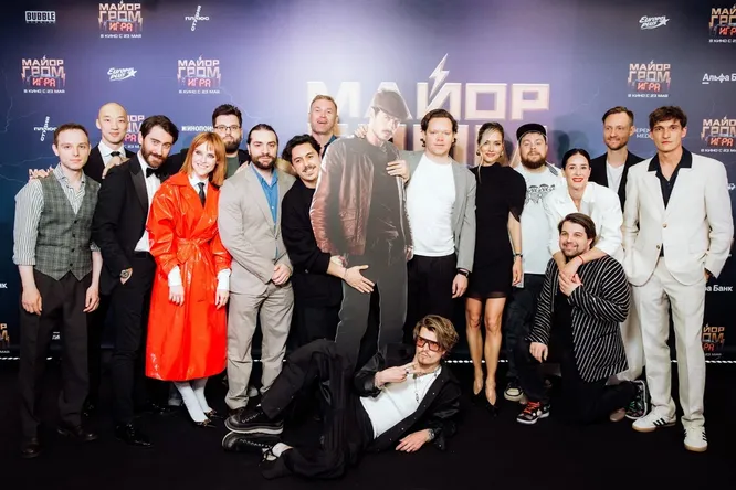 «Мне тут передают, что меня потеряли, но на самом деле все со мной в порядке — я ни в Каннах, ни в шавермичных, а на съёмках секретнейшего проекта», — передал исполнитель главной роли майора Грома Тихон Жизневский, на премьере его не было.