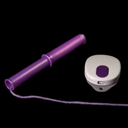 Система работает так: длинный хвостик специального тампона крепится к Bluetooth-датчику. Датчик вешается на пояс.