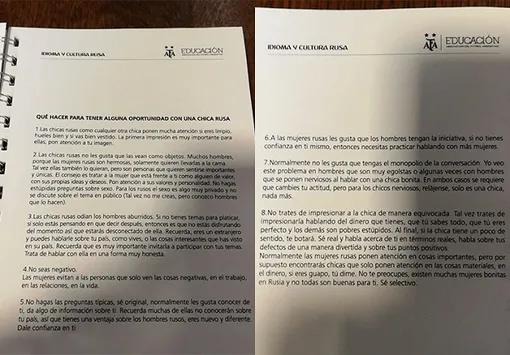 По словам AFA, они не имеют отношения к главе про соблазнение россиянок. Однако фото страниц буклета все же попало в Сеть. К слову, Пенниси заявил, что изначально в федерации одобрили эту главу. «Обычно русские девушки обращают внимание на важные вещи, но есть и те, кому важны только деньги. Не волнуйтесь, в России много красивых женщин, вам подойдут не все. Будьте избирательны», — говорится в инструкции.
