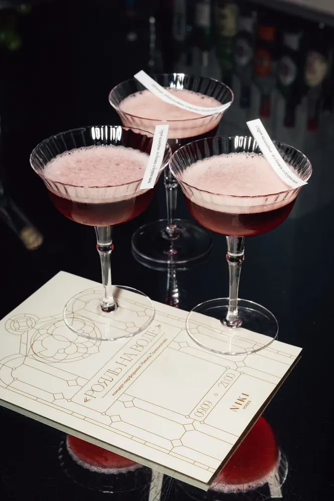 Гостям подавали коктейли «Рояль на водке», Николай II и – хит вечера – коктейль Chopin’s Cherry Lips с ароматом копченой вишни и табака.