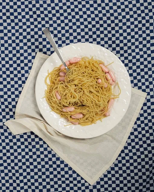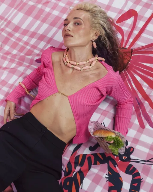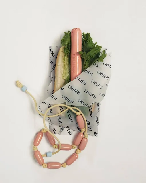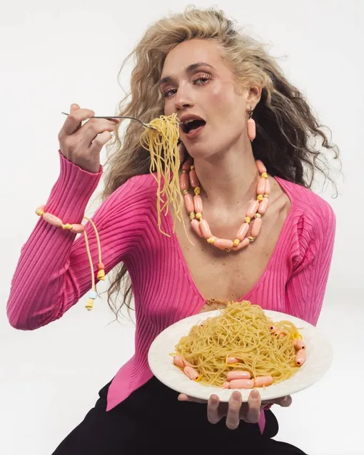К моносерьге в виде отдельной сосиски модницам предлагают подобрать браслет в виде связки сосисок и паракордом, имитирующим спагетти, и такое же ожерелье.