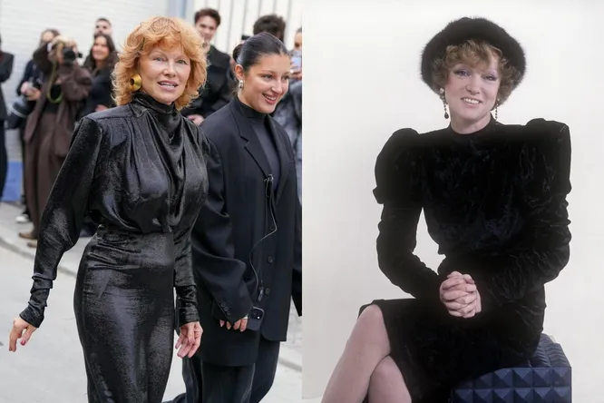 Ну а в прошлый четверг появилась на показе Mugler весна-лето 2026 в чёрном шёлковом платье с высоким вырезом, рельефными, острыми подплечниками, обтягивающим силуэтом и драпированными тканевыми элементами а-ля гламур 80-х.