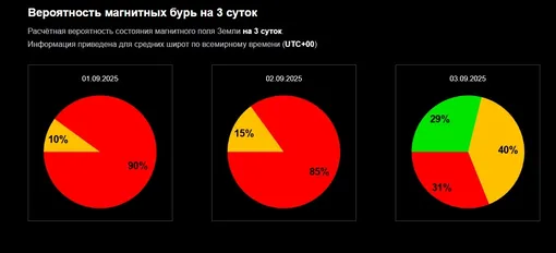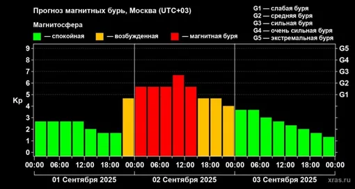 Пик бури придётся на полдень 2 сентября. В этот период геомагнитные показатели поднимутся до уровня Kp=7, что равно категории G3. По шкале космических метеоусловий, возмущения данных индексов соответствуют сильной солнечной бури.