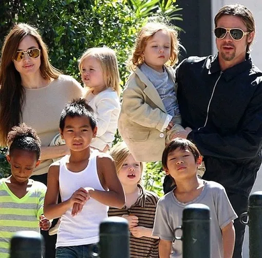 Актеры прожили вместе более 12 лет, а в официальном браке находились лишь два года. Они воспитывают шестерых детей: приемных Мэддокса Шивана, Захару Марли, Пакса Тьена и родных Шайло Нувель, Нокса Леона и Вивьен Маршелин.