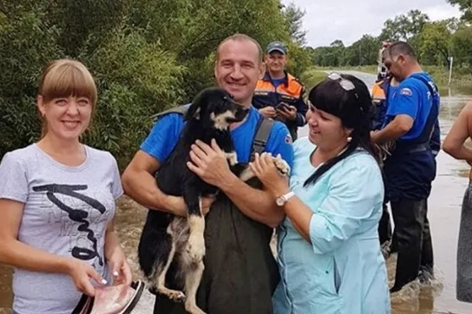 «Это сотрудники специализированной пожарно-спасательной части Владивостока, у которых есть соответствующая подготовка и экипировка для выполнения самых разных задач. Мы их называем "спецназ". Вчера, после выполнения оперативных задач они уже направлялись в свой лагерь. Но в районе поселка Синельниково местные жители попросили их остановиться и снять с дерева собаку, застрявшую там в паводок», - рассказали в пресс-службе.