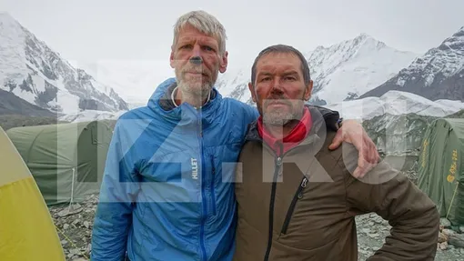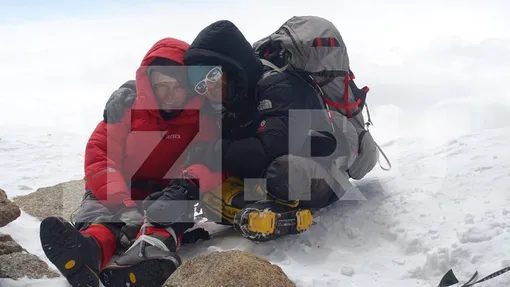 На второй фотографии слева снят альпинист из Германии Гюнтер Зигмунд, а справа — Роман Мокринский, оказавший Наговициной первую помощь.
