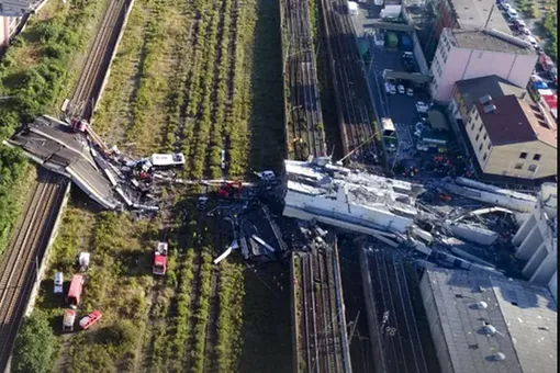 В Италии объявлен траур. Вчера обрушился мост, известный также как Виадук Польчевера. Сооружение располагалось над промышленной зоной, железнодорожными путями и обмелевшей рекой.