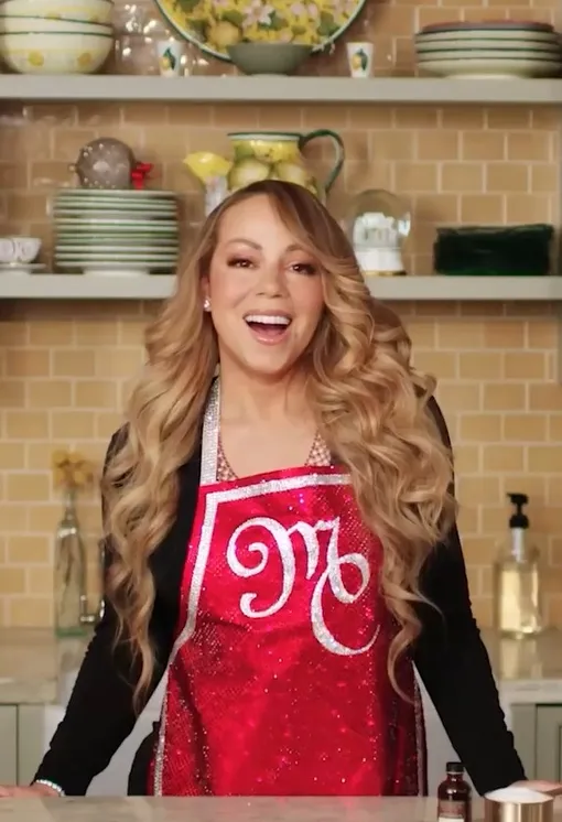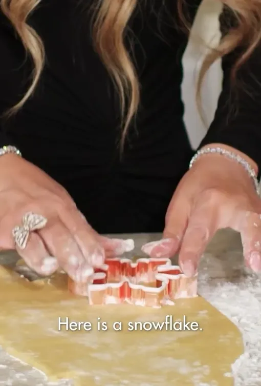 Выкладывая тесто при помощи красной лопатки Мэрайя говорит, что «сейчас точно все скажут, что я не умею готовить». Однако звезда уточняет, что делает она так исключительно потому, что бережёт ногти. Они у неё длинные и она не хочет, чтобы под них попало тесто. Ну а после из пласта она вырезает фигурное печенье в виде снежинок и бабочек.