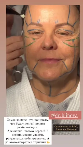Наталия Медведева рассказала, какие процедуры были выполнены для её мамы. Они решили сделать подтяжку лица: СМАС-подтяжку шеи и эндоскопическую подтяжку лба, висков и век, за исключением нижних век и средней части лица.