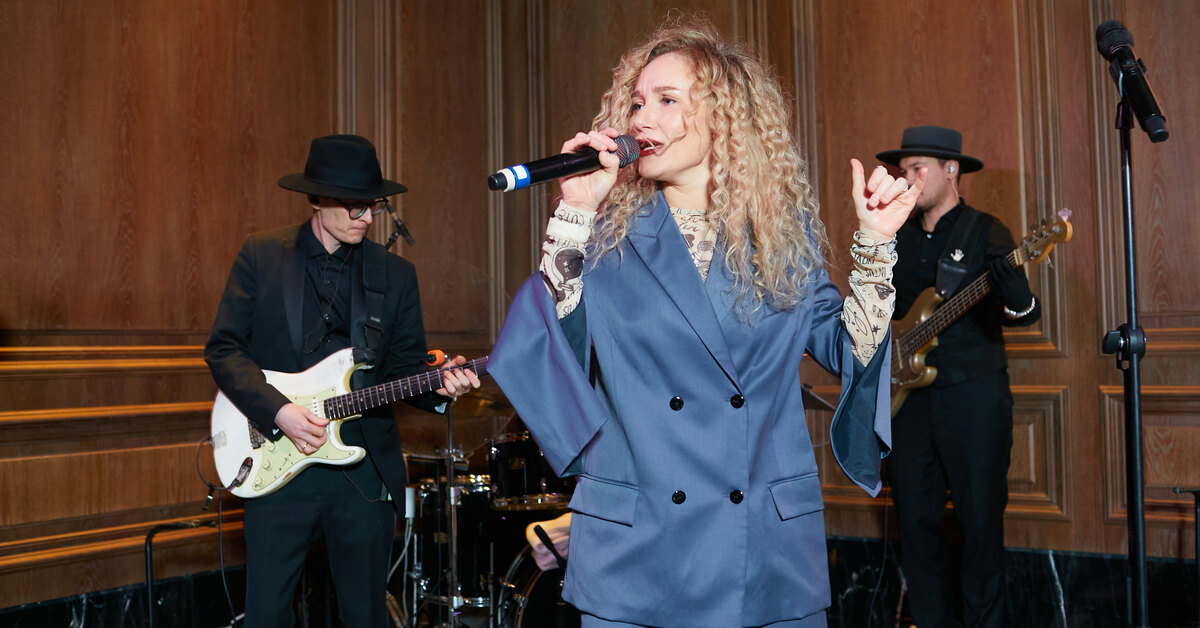 Не знаем, каким был дресс-код вечеринки, но большинство гостей выбрали total black! За исключением разве что Евгении Малаховой — певица и актриса выделялась на фоне остальных блузой цвета фуксия.