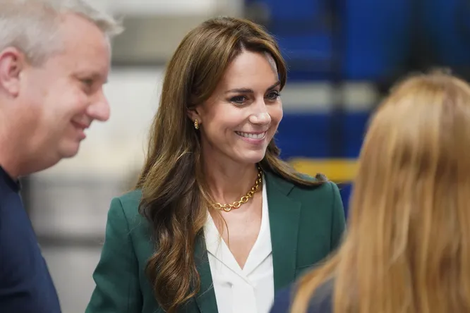 Эта новость для тех, кто соскучился по выходам Кейт Миддлтон. Недавно принцесса Уэльская вновь порадовала своих фанатов и посетила текстильную фабрику Hainsworth Fabric of a Nation в Лидсе. Стоит отметить, что этот официальный визит был для монаршей персоны особенным — эта мануфактура когда-то принадлежала ее прапрадедушке.