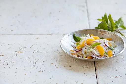 Лара Стоун охотно делится рецептами любимых блюд. В качестве ужина модель, которая очень пристально следит за своей формой, советует различные салаты, и один из ее любимых — из фенхеля с травами.