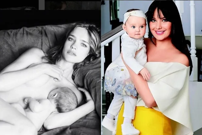 Одно из самых известных фото Натальи сделано через пару недель после родов. Да, она кормит грудью!