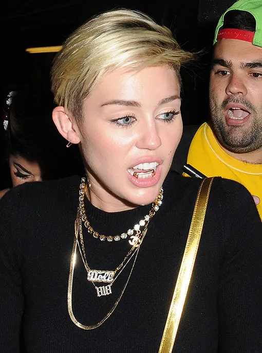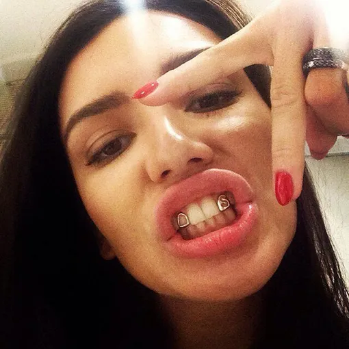 Эпатажная красотка, выросшая из миленькой Ханны Монтаны, просто не могла обойти стороной такой тренд, как украшения на зубы. Она заказала аж три пары «решеток» и носит их попеременно. Правда, надо сказать, при всем ее эпатаже гриллзы у певицы очень и очень аккуратные. То тоненькая полосочка из драгоценного металла с инкрустацией драгоценных камней, то небольшие клыки на нижних зубах...