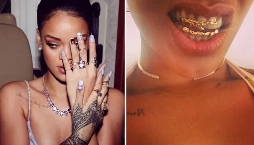 Рианна заказала у знаменитого дантиста-ювелира из Парижа Долли Коэн уникальное украшение в виде автомата. Долли – очень дорогой мастер, работы которого не повторяются.