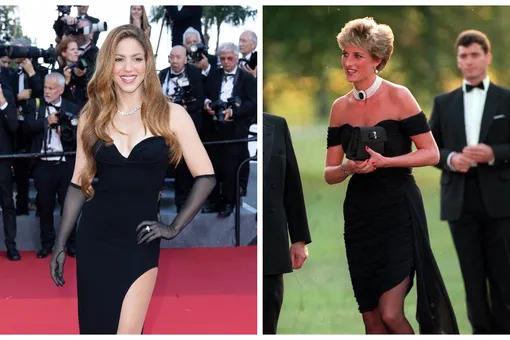 Наряд Шакиры, в котором она появилась на Каннском кинофестивале 2022 года, критики назвали одной из самых приближенных копий «Платья мести» принцессы Дианы. Певица только что объявила о расставании с футболистом Жераром Пике после 12 лет отношений из-за его предполагаемой неверности. И хотя певица признавалась, что подавлена произошедшим, на красной дорожке она блистала. Возможно, это лишь совпадение, и Шакира ни в коем случае не пыталась провести параллель со знаменитым нарядом принцессы Уэльской, но общие черты в платьях и месседже, которые они транслировали, нашли многие.