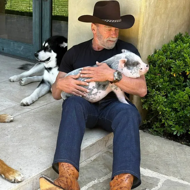 Не даёт стареть: Арнольд Шварценеггер показал милое видео ежедневной тренировки с домашним поросёнком