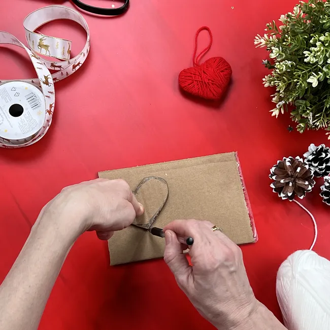 Поделка: ёлочная игрушка «Сердце» из картона и пряжи