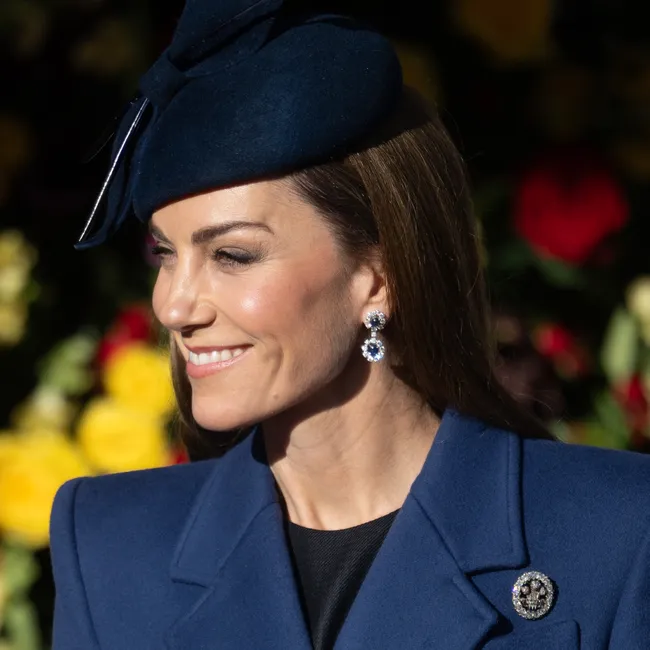 Синее пальто, украшения принцессы Дианы и «Перья принца Уэльского»: Кейт Миддлтон показалась в элегантном образе