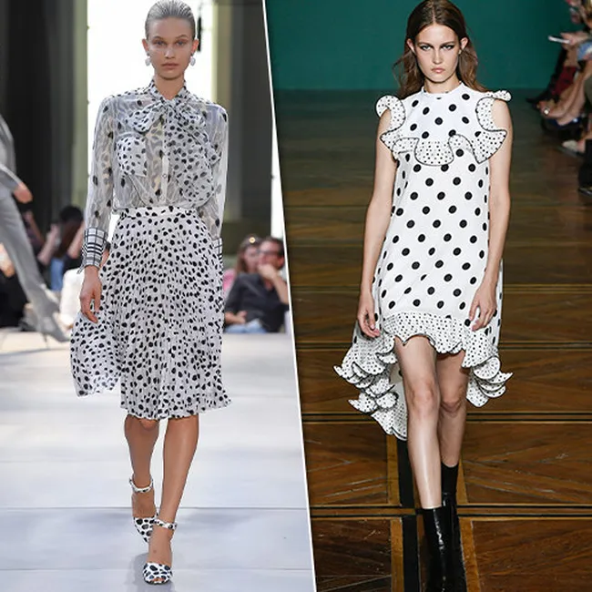 Кокетливо и нарядно: 10 нарядов образов с черно-белым горохом