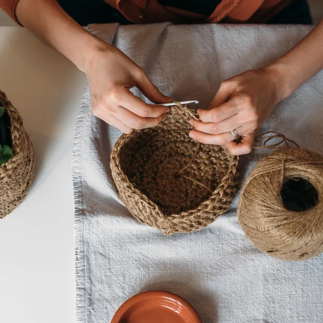 Вязание из джута: корзина, коврик и ещё 5 вещей для дома, которые можно быстро связать